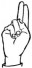 На ћирилици написано ЛАБУДА ДОДИЋ састоји се из 11 слова [?]. Исписано ћириличном једноручном азбуком за глувонеме:
